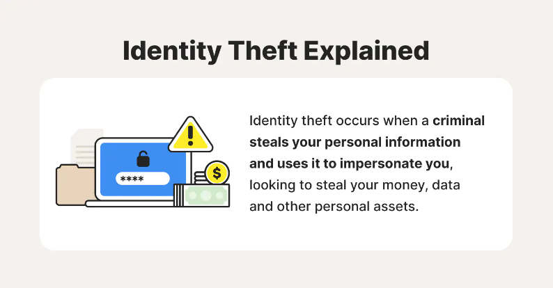 In simple terms, identity theft means someone pretends to be you financially or legally to gain money, services, or benefits.